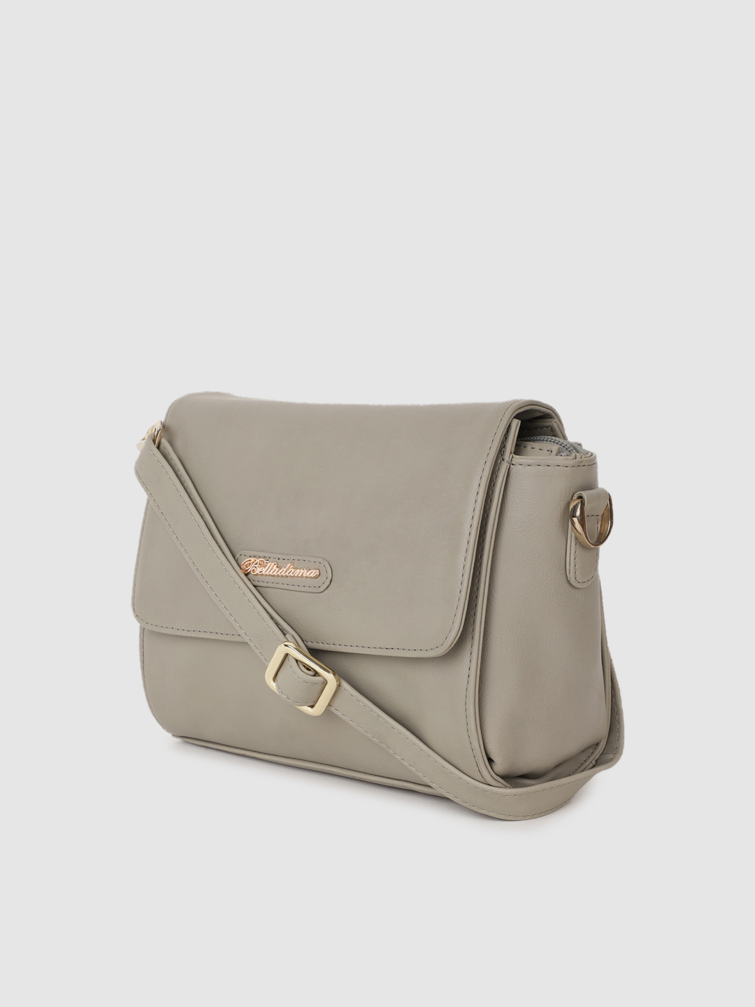 Choose to carry your valuable belongings in a fashionable way with this women’s sling handbag from BELLADAMA. Crafted from premium quality synthetic, it will certainly last long. To jazz up your appearance, this grey slings vaunts a solid pattern. It comes with a cross body strap and a magnet closure that ensures the safety of your valuables. It has compartments and pockets to store your belongings with ease.