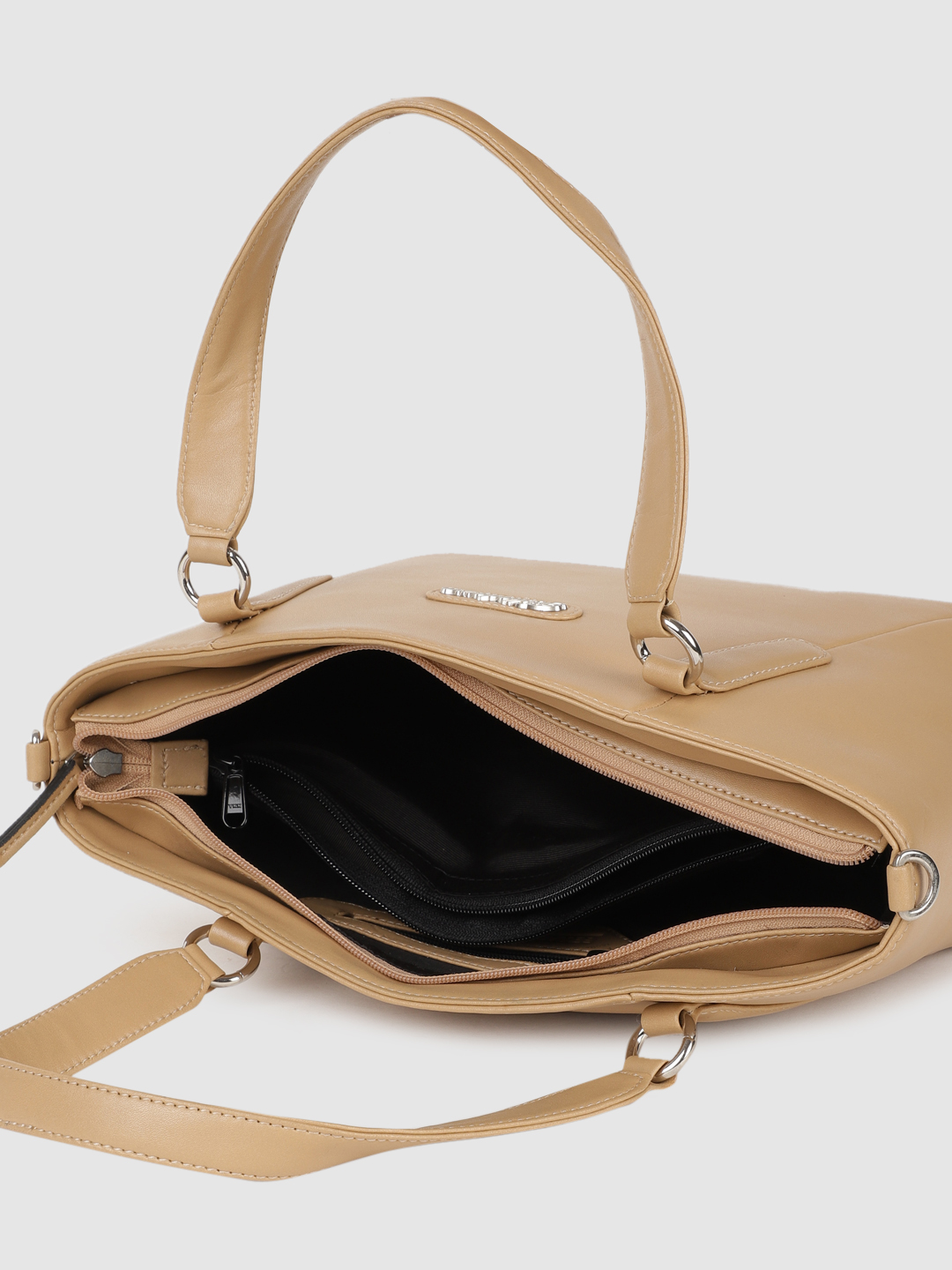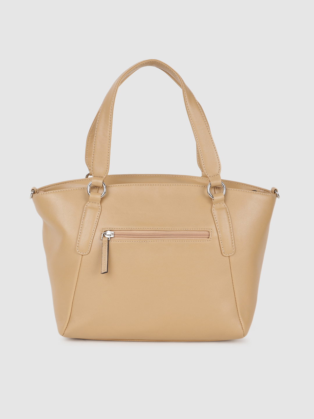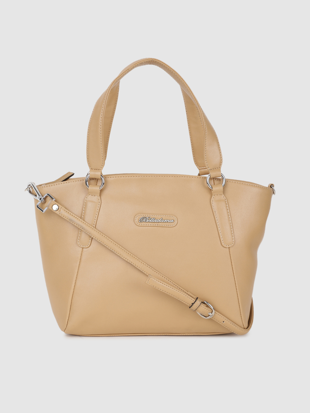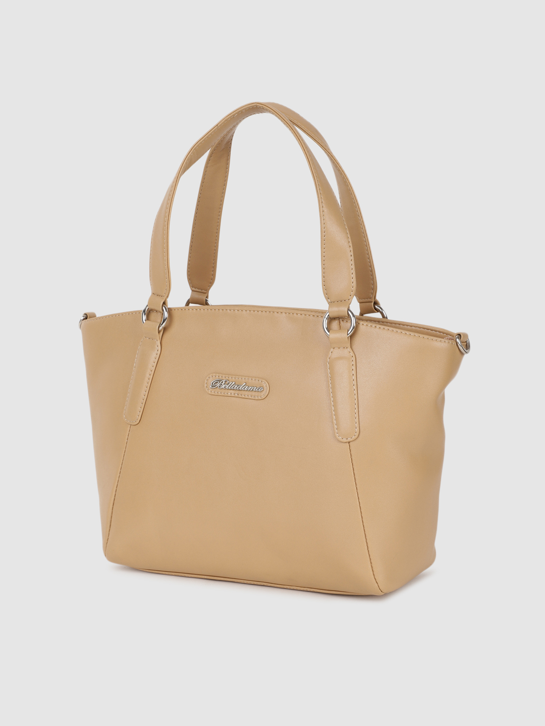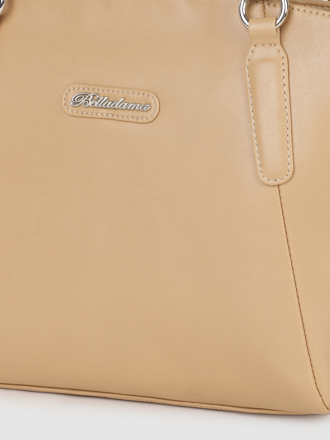 Be known as the stylish one among your friends as you step out carrying this women’s handbag from BELLADAMA. Manufactured using high-quality synthetic, this beige handbags is long-lasting. This handbags features double handle straps and a zip closure that ensures the safety of your valuables. It exudes a solid pattern that will enhance your look in a stylish way. To accommodate your stuff, it comes with compartments and pockets.